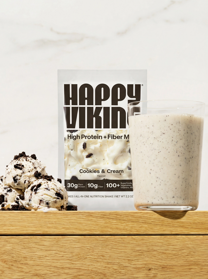 Happy Viking fuels your body with protein, fiber, superfoods, and essential nutrients. A delicious, plant-based shake in seconds.