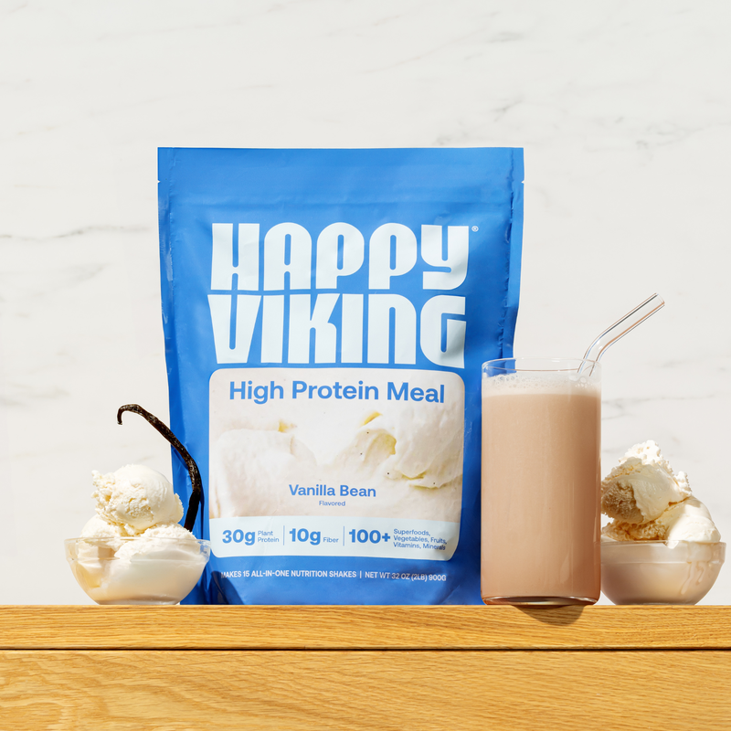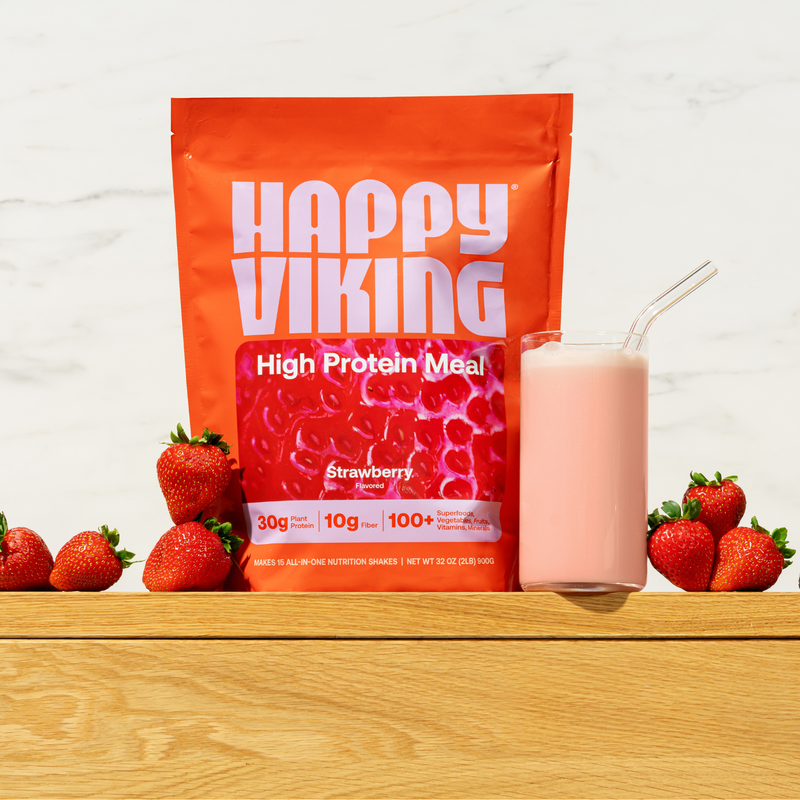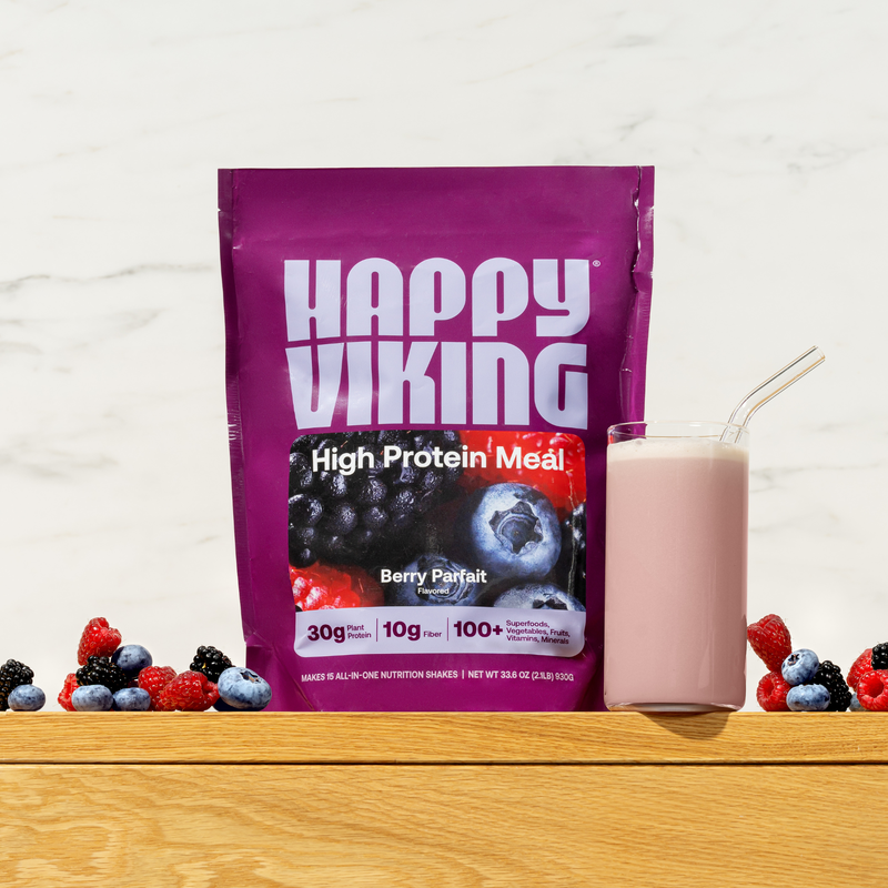 Happy Viking fuels your body with protein, fiber, superfoods, and essential nutrients. A delicious, plant-based shake in seconds.